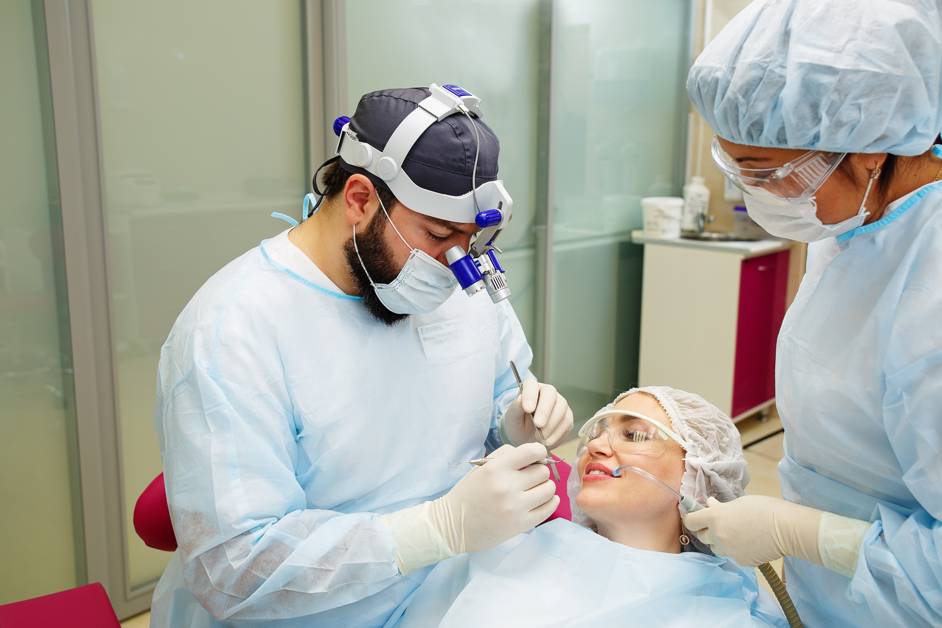 На первом приеме врач препарирует единицу. Тщательно удаляет ткани, поврежденные кариесом, формирует место под будущую накладку.