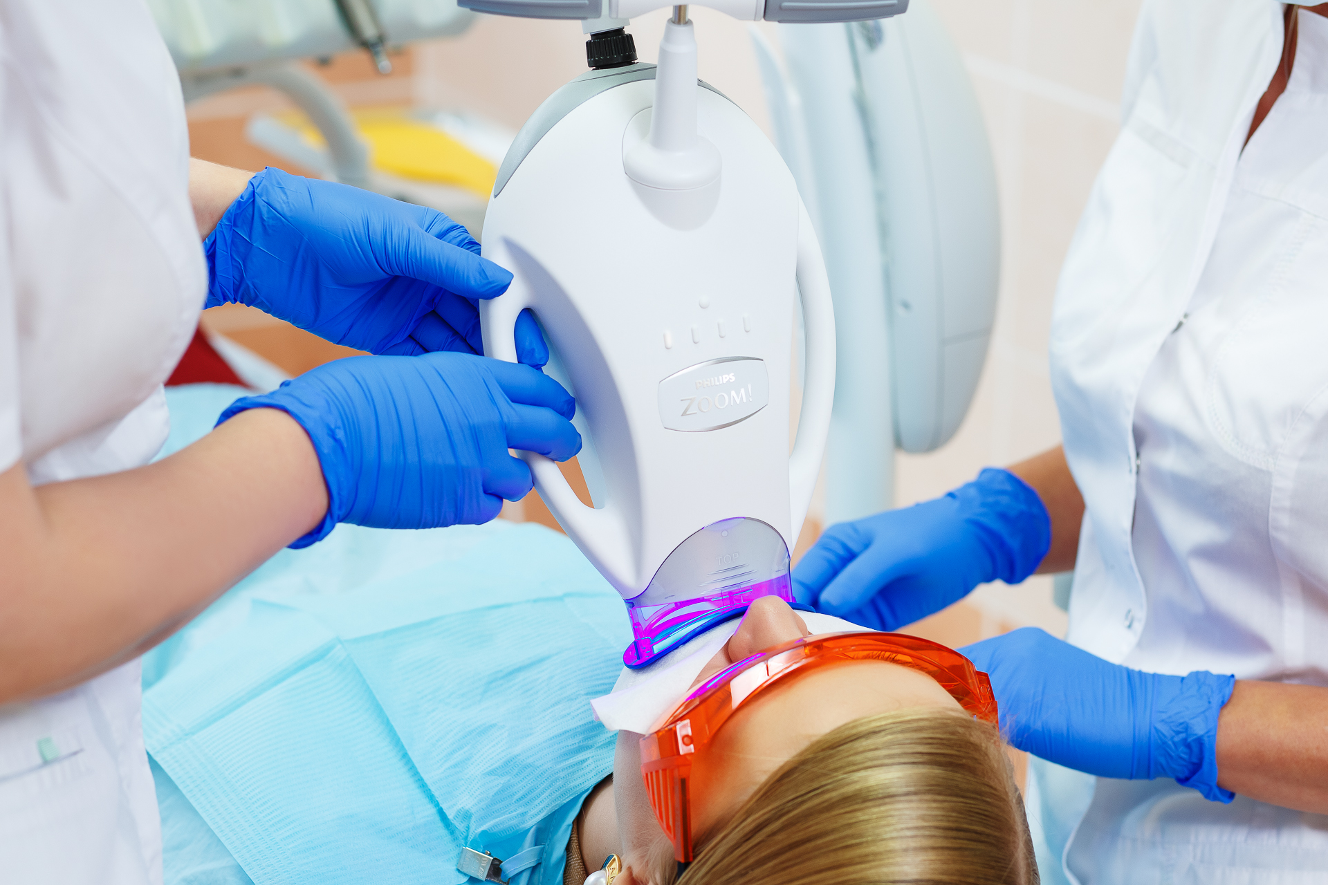 Перед отбеливанием Zoom 4 проводится обязательная подготовка:- Санация полости рта — лечение кариеса, заболеваний десен и других стоматологических проблем (при наличии).